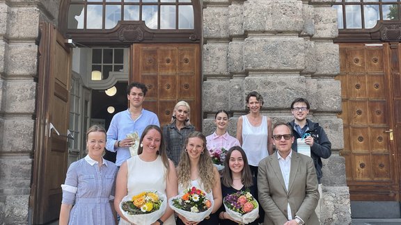 Gestern Montag, 19.06.2023, wurden die bisherigen Studierendenvertreter:innen verabschiedet und die ab Juli neuen Vertreter:innen im Rahmen einer kleinen Feier begrüßt. Institutsleiter Prof. Francesco A. Schurr und die stellvertretende Institutsleiterin Prof. Margareth Helfer dankten in ihrer Ansprache Frau Natalie Shirin Boday und Frau Hannah Mair sowie Frau Johanna Steger für ihren großen Einsatz in der von der Coronakrise geprägten Funktionsperiode 2021-2023. Das Institut für Italienisches Recht freut sich auf die Zusammenarbeit mit Frau Isabel Sgammini, Herrn Marco Malsiner und Herrn Alexander Walther von Herbstenburg und wünscht dem neuen Team der Studierendenvertretung alles Gute.