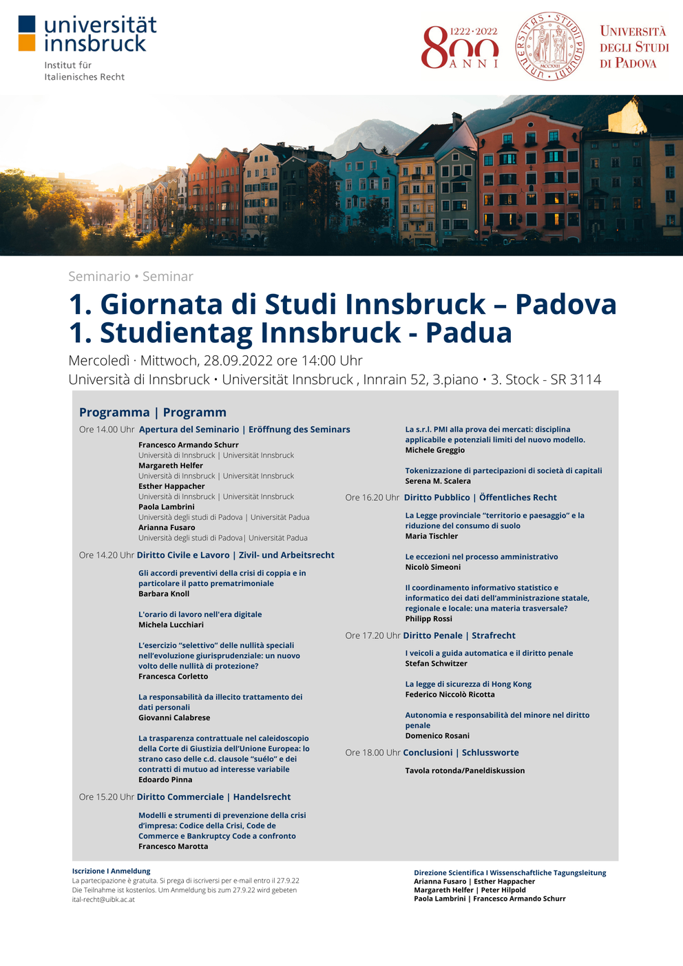 1. Giornata di Studi I 1. Studientag Innsbruck - Padua
