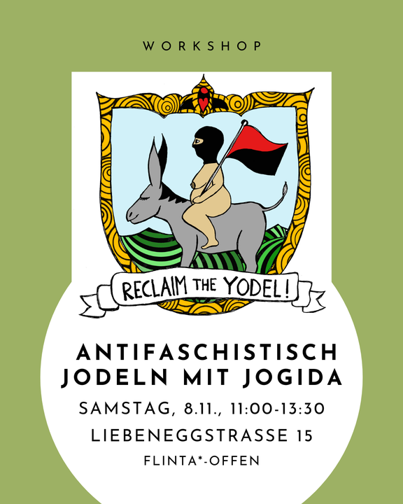Am 8. November von 11:00 bis 13:30 Uhr bietet das Berliner Duo „Esels Alptraum“ einen Workshop zum antifaschistischen Jodeln im AFLZ in Innsbruck an (Liebeneggstraße 15).