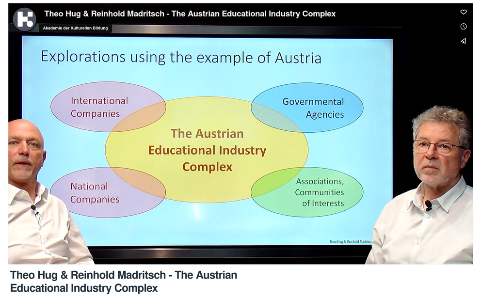 Theo Hug hat gemeinsam mit Valentin Dander im Rahmen der Tagung „Bildung und digitaler Kapitalismus“ in Remscheid (20./21.6.2022) die AG 3 zum Thema „Bildungsindustrien und Lerntechnologien: Kritik und Alternativen“ gestaltet. Zusammen mit Reinhold Madritsch hat er u.a. auch einen Videoimpuls gestaltet (https://vimeo.com/720742088/da87eebd9f).
