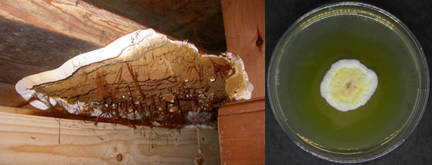 In my PhD I am working with one of the most effective brown-rot causing fungi namely Serpula lacrymans, which colonizes houses in temperate and boreal regions all over the world. In building construction, a house infested with S. lacrymans is quite feared, as the removal is very expensive and laborious and has to be done according to official guidelines. S. lacrymans spreads very quickly in the houses through vegetative mycelium and through the formation of mycelial cords, which are responsible for the transport of nutrients. As soon as the fungus has established itself on built timber, it begins to degrade cellulose and hemicellulose.