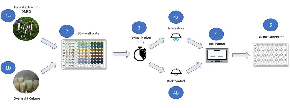 In enger Anlehnung an aktuelle Forschungsfragen (forschungsgeleitete Lehre) wird in diesem Modul das Wachstum und die Primär- bzw. Sekundärmetabolitenproduktion von filamentösen Pilzen in Bioreaktor-Batchkulturen sowie anderen (selbst gewählten) Kultivierungsformen und - bedingungen (z.B. Co-Kultivierung, Variationen in Belichtungsbedingungen, Mediumskomposition) analysiert. Von zentralem Interesse sind Sekundärmetabolite, welche auch als Photosensitizer dienen und potenziell in alternativen Therapieansätzen (Photodynamische Therapie) gegen multiresistente Mikroorganismen sowie als Antikrebsmittel eingesetzt werden könnten. Die bislang noch kaum untersuchten Kultivierungsbedingungen, die zur Produktion dieser pharmakologisch interessanten Verbindungen führen, sind konkreter Forschungsgegenstand dieses Moduls.