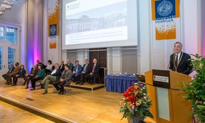 „Dieser Festakt ist eine Geste des Dankes, der Anerkennung und der Wertschätzung“, eröffnete Rektor Tilmann Märk die feierliche Verabschiedung in der Aula der Universität. „Die Emeritierten und Pensionierten verlassen die Universität Innsbruck in Zeiten der inneren Ruhe und der äußeren Anerkennung“, so Tilmann Märk. „Die äußere Anerkennung ist dabei nicht zuletzt der Verdienst der in den Ruhestand gehenden Professorinnen und Professoren sowie wissenschaftlichen Mitarbeiterinnen und Mitarbeitern.“ Gleichzeitig verwies der Rektor auf die Überzahl an Männern unter den zu Verabschiedenden. „Das ist bezeichnend für die früher oft schwierigen Bedingungen für Frauen an Universitäten. Umso erfreulicher ist es, dass in jüngster Vergangenheit sieben Frauen und sieben Männer an die Universität berufen wurden.“, freute sich Tilmann Märk. „Das ist ein Signal für Gleichstellung, die an der Universität einen sehr hohen Stellenwert hat und die auch im neuen Leitbild der Universität verankert ist.“ Zur Verabschiedung der Anwesenden zitierte Tilmann Märk den Schriftsteller Arthur Schnitzler: „Der Abschied schmerzt immer, auch wenn man sich lange darauf vorbereitet.“