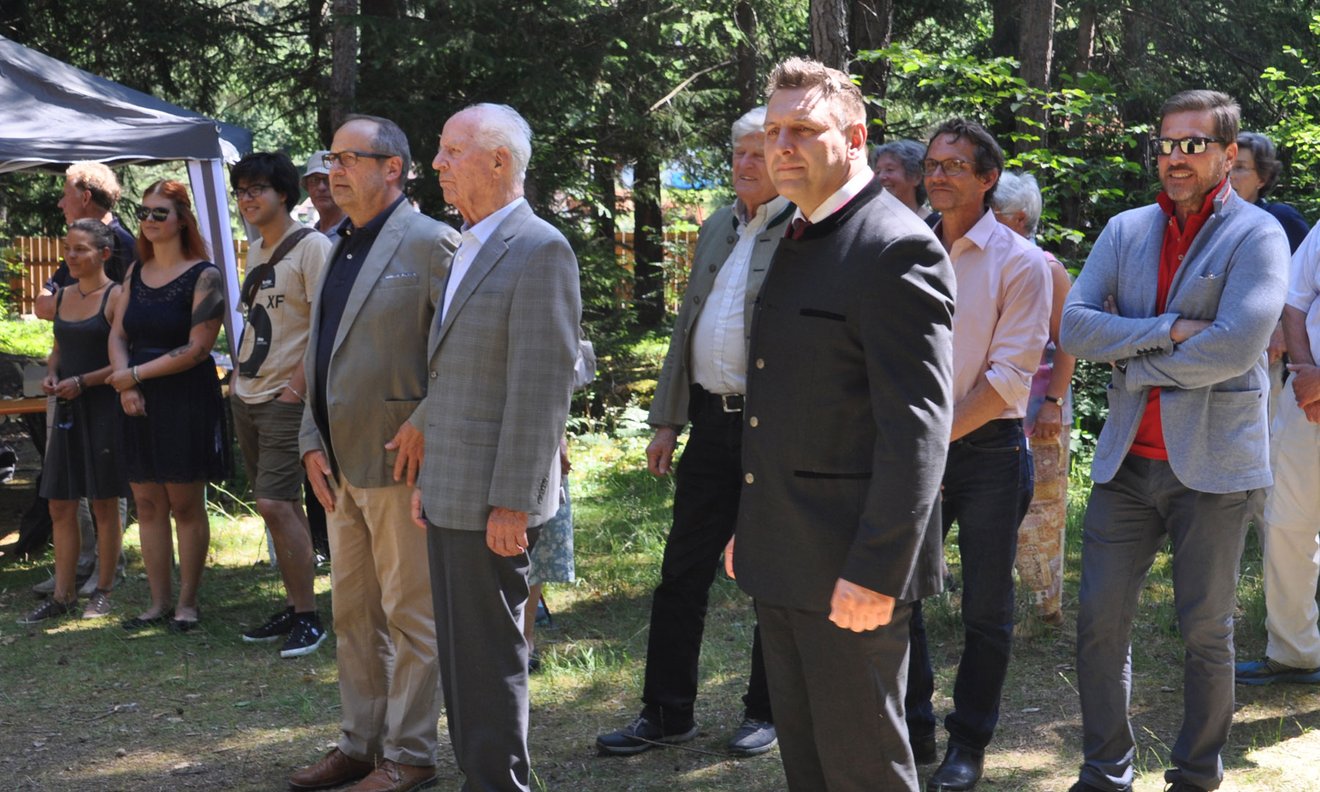 Ehrengäste der Eröffnungsfeierlichkeiten (von lks.): Dr. Benedikt Erhard (Amt der Tiroler Landesregierung – Abteilung Kultur), Dr. Alois Partl (Altlandeshauptmann von Tirol), Dipl.-Ing. Helmut Heinricher (Obmann des Vereins Archäotop Hohe Birga), Markus Haid (Bürgermeister der Gemeinde Birgitz), Univ.-Prof. Dr. Bernhard Fügenschuh (Vizerektor der Universität Innsbruck), Christian Abenthung (Bürgermeister von Axams und Obmann des Planungsverbandes westliches Mittelgebirge) (Bild: Silvia Gradl)