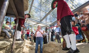 Kürzlich konnte im Rahmen einer großen Feier unter Anwesenheit zahlreicher Ehrengäste, das fertig restaurierte „Haus VI“ eröffnet werden. Nach der Begrüßung durch Markus Haid, den Bürgermeister der Gemeinde Birgitz, richteten Dr. Benedikt Erhard von der Kulturabteilung sowie Vizerektor Univ.-Prof. Dr. Bernhard Fügenschuh die Grußworte des Landes bzw. der Universität Innsbruck an die annähernd 200 Besucherinnen und Besucher. Nach einem kurzen Abriss der Geschichte des Vereines Archäotop Hohe Birga durch dessen Obmann Dipl.-Ing. Helmut Heinricher begab man sich auf die „Hohe Birga“ selbst, wo der langjährige Grabungs- und Projektleiter der archäologischen Ausgrabungen, assoz.-Prof. Mag. Dr. Florian Müller, die freigelegten Überreste sowie das Konzept der Restaurierungs- und Rekonstruktionsmaßnahmen an „Haus VI“ vorstellte. Im Anschluss übernahm Inge Partl, die Gattin des ebenfalls anwesenden Altlandeshauptmanns Dr. Alois Partl, die feierliche Eröffnung des Gebäudes. Die von der Schützenkompanie und der Musikkapelle Birgitz feierlich umrahmten Festlichkeiten endeten in einem Konzert und Eröffnungswaldfest für alle Besucherinnen und Besucher.