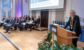 Mit einem Festakt in der Aula der Universität wurden die im Sommersemster 2019 berufenen Professorinnen und Professoren an der Universität Innsbruck begrüßt. „Sie kommen zum 350-Jahr-Jubiläum an unsere Universität“, sagte Rektor Tilmann Märk bei der Begrüßung. „Diesen Geburtstag hat die Universität gebührend gefeiert und zwar anders. Das zeigen vor allem die Highlights des Jubiläumsjahres, wie das Eröffnungskonzert mit der Eigenkomposition ,unified’, das Fest der Wissenschaft in Mitten der Stadt Innsbruck und natürlich die Festwoche rund um den 15. Oktober, bei der im Tiroler Landestheater fünf Autorinnen und Autoren die Universitätsgeschichte in Szene gesetzt haben. Und das letzte Highlight, das Diskussionsforum ,Zukunft denken’ steht noch bevor“, sagte der Rektor. Dass die Geschichte der Universität Innsbruck eine wechselvolle ist, zeigt die von Prof. Margret Friedrich und Prof. Dirk Rupnow herausgegebene neu aufgearbeitete Uni-Geschichte. Aktuell sieht Rektor Märk drei große Herausforderungen für die Universität Innsbruck: Die Steigerung der Zahl der prüfungsaktiven Studierenden, den Neubau Innrain und den gesellschaftlichen Umbruch durch die Digitalisierung. „Sie tragen nun eine große Verantwortung“, sagte der Rektor, „denn Sie werden maßgeblich zur Entwicklung unserer Universität beitragen.“