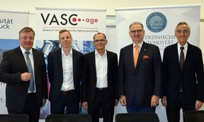Höhere Lebenserwartung – mehr Schlaganfälle: Das neue Forschungszentrum VASCage will Blutgefäße gesund halten, denn wenn diese altern, steigt das Schlaganfall-Risiko. Verbesserte Strategien zur Vorbeugung, Diagnose, Therapie und Rehabilitation werden entwickelt. Internationale Partner aus Wirtschaft und Wissenschaft sorgen für eine rasche Einführung in den Klinikalltag. Im Rahmen eines Pressegesprächs wurde heute über die Entwicklung und Ziele des neuen Zentrums informiert. Die Menschen werden immer älter, doch die gewonnenen Lebensjahre gehen häufig mit Behinderung einher, sehr oft als Folge eines Schlaganfalls. „Die Wahrscheinlichkeit, irgendwann im Leben einen Schlaganfall zu erleiden, liegt in Mitteleuropa heute bereits bei 25%“, weiß Stefan Kiechl. Kiechl ist wissenschaftlicher Leiter von VASCage, Direktor der Universitätsklinik für Neurologie der Medizinischen Universität Innsbruck und international anerkannter Schlaganfall-Experte. Die Fachwelt sieht Schlaganfall längst als weltweite Herausforderung, „Stroke – a global challenge“ lautete daher auch der Titel des Gastvortrags von Michael Brainin, dem Präsidenten der Weltschlaganfallorganisation, im Rahmen der Eröffnungsveranstaltung. Der Schlaganfall wird meist durch alters- und lebensstilbedingte Veränderungen der Blutgefäße ausgelöst. Daher werden in VASCage sowohl die Ursachen der Gefäßalterung erforscht als auch Möglichkeiten der Prävention. Veränderungen der Blutgefäße frühzeitig zu erkennen und aufzuhalten, bevor es zum Schlaganfall kommt, ist genauso Thema wie eine verbesserte Behandlung des Schlaganfalls selbst. Auch die langfristige Rehabilitation, die Bewältigung des Alltags und die Verhinderung eines erneuten Schlaganfalls stehen auf der Forschungsagenda.