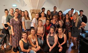 Am Montag starteten dann ihre Kurse, die von Habsburger Geschichte über Geologie der Alpen bis zum International Management reichen. In den insgesamt 38 angebotenen Kursen der UNO Summer School nehmen auch ca. 50-60 Studierende der Universität Innsbruck teil, die den regen Austausch mit ihren amerikanischen Kolleginnen und Kollegen aber nicht nur beim Studieren finden können, sondern auch als sog. „Buddies“ – heimische Gastgeber also, die den Amerikanerinnen und Amerikanern ihre Stadt und ihre Uni zeigen können. Während die Studierenden vormittags ihre Kurse absolvieren, sind Nachmittage reserviert, um ihnen auch Land und Leute vorzustellen mit vielen Ausflügen und Aktivitäten wie z.B. Wanderungen (sogar bis zum Gletscher!), Besuche in Museen und lokalen Unternehmen (u.a. Swarovski), eine Fahrt zur Gedenkstätte Dachau, und sogar soziales Engagement mit verschiedenen Organisationen wie die Tiroler Sozialen Dienste, die Teestube – Verein für Obdachlose, und das Vinziprojekt Waldhüttl.
