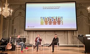 Der Blick in die Gegenwart zeigt auch eine zu Recht selbstbewusste Organisationseinheit, die ihren Platz an der Universität gefunden hat und wichtige Zukunftsthemen besetzt. Weitreichende Zukunftsfragen wurden in einer von Bernhard Weicht geleiteten Podiumsdiskussion zu den Aufgaben der Soziologie heute und in der Zukunft zwischen Institutsmitgliedern diskutiert. Zwischen Einblicken in die Geschichte, gegenwärtigen Bilanzziehungen und Ausblick auf die Zukunft wurden die Feierlichkeiten mit musikalischen Einlagen und zahlreichen Gratulant*innen abgerundet.