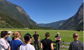 Der Tag war dem intensiven Textstudium gewidmet. In drei Gruppen galt es getrennt "Landscape of the Mind", "Cinematik Landscapes" und "Cultural Landscapes" zu diskutieren und für eine erste Präsentation im Plenum am Abend vorzubereiten. Manche nutzten die Outdoor-Möglichkeiten des Universitätszentrums, um sich etwa im Angesicht der Berge über Petrarca auszutauschen.