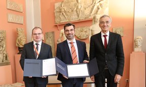 Von links: Stefan Zathammer mit seinem Laudator Wolfgang Kofler vom Institut für Klassische Philologie und Neulateinische Studien der Universität Innsbruck.