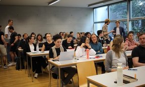 Den Abschluss bildete am Abend eine Podiumsdiskussion zur Frage: „Welche Rolle spielt die Universität bei der Klimapolitik?“. An der Diskussion nahmen Wissenschaftler:innen, Nachhaltigkeitsexpert:innen und Aktivist:innen teil, darunter Lorenzo Rieg vom Vizerektorat für Digitalisierung und Nachhaltigkeit, Margreth Keiler, Co-Vorsitzende des 2. Österreichischen Sachstandsberichts zum Klimawandel (AAR2) am Institut für Geographie der Universität Innsbruck, Katharina Gangl, Leiterin der Forschungsgruppe „Behavioral Economics“ am Institut für Höhere Studien in Wien (Insight Austria), Elisabeth Gsottbauer vom Institut für Finanzwissenschaft der Universität Innsbruck, Jean Herzog, Vertreter des „Green Offices“ der Universität Innsbruck, und Katharina Geistlinger, Vertreterin der Klimaaktivist:innengruppe „Letzte Generation“. Die Podiumsdiskussion wurde von Markus Walzl, dem Dekan der Fakultät für Volkswirtschaft und Statistik, moderiert. Ziel war es, in einer öffentlichen und offenen Diskussion den (wissenschaftlichen) Beitrag der Universität zum Klimaschutz zu erörtern, und gemeinsam herauszuarbeiten, welche Rolle die Universität als Institution im Hinblick auf den Klimaschutz spielen sollte. Angesichts der Dringlichkeit der Klimakrise ist es von großer Bedeutung, dass Bildungseinrichtungen wie die Universität Innsbruck eine aktive Rolle bei der Suche nach Lösungen einnehmen und ihr Wissen und ihre Ressourcen für den Klimaschutz einsetzen, waren sich alle Beteiligten einig.