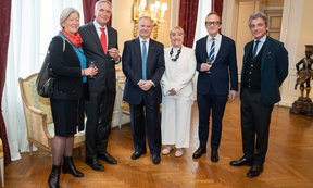 Von links: Der Geehrte, Prof. Bernhard Eccher mit Gattin, Botschafter Dott. Stefano Beltrame mit Gattin, Prof. Francesco Armando Schurr (Universität Innsbruck) und Prof. Marcello Maggiolo (Universität Padua).
