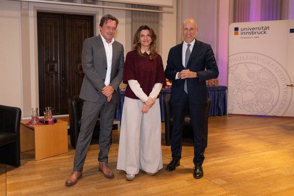 In ihrer Festrede beim anschließenden Festakt bedankte sich Rektorin Univ.-Prof.in Dr.in Veronika Sexl bei allen, die vor zehn Jahren mit großem Engagement den Förderkreis ins Leben gerufen haben. Sie betonte die wichtige Rolle der Spender:innen für den wissenschaftlichen Erfolg und die Innovationskraft der Universität sowie die Wahrung ihrer Rolle in der Gesellschaft. Nach der herzlichen Begrüßung durch Verkehrslandesrat René Zumtobel und den Bürgermeister der Universitätsstadt Innsbruck, Ing. Mag. Johannes Anzengruber, BSc, folgte ein Video-Zusammenschnitt der Highlights aus den ersten zehn Jahren.