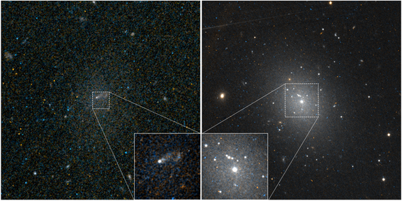 Bei der Untersuchung von Beobachtungen einer großen Stichprobe von fast 80 Zwerggalaxien mit dem Hubble-Weltraumteleskop, die von Francine Marleau am Institut für Astro- und Teilchenphysik geleitet wurden, bemerkte eine Gruppe von zehn Forschern der internationalen MATLAS-Kollaboration (unter der Leitung von Pierre-Alain Duc, Astronomisches Observatorium Straßburg, Frankreich) eine Handvoll Galaxien mit einem ungewöhnlich aussehenden Kernsternhaufen. Bei einigen Galaxien lagen mehrere Sternhaufen dicht beieinander, während andere ein Merkmal aufwiesen, das einem schwachen Lichtfluss ähnelte, der mit dem Kernsternhaufen verbunden war.