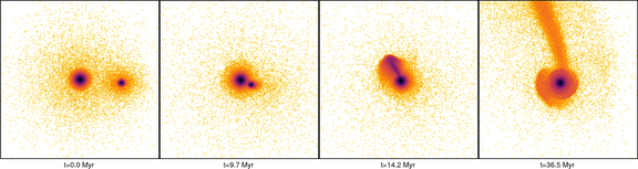 Um den Ursprung der schwachen Lichtflüsse zu bestätigen, wurden ergänzende Simulationen mit ultrahoher Auflösung durchgeführt, um den Verschmelzungsprozess zu modellieren. In diesem Teil der Arbeit, den Rory Smith an der Universidad Técnica Federico Santa María in Santiago, Chile, leitete, wurden verschiedene Verschmelzungen zwischen Sternhaufen mit unterschiedlicher Masse, Dynamik und Anzahl der beteiligten Haufen simuliert. Die Ergebnisse bestätigen, dass die beobachteten Lichtflüsse entstehen, wenn zwei Sternhaufen mit erheblichen Massenunterschieden miteinander verschmelzen. Je größer das Massenverhältnis ist, desto länger ist der Lichtfluss. Der Prozess dauert in der Regel in astronomischen Skalen nur kurze Zeit, weniger als 100 Millionen Jahre, und die entstehenden Erscheinungen sind sogar noch kürzer sichtbar, was die Schwierigkeit erklärt, ein solches Phänomen zu beobachten.