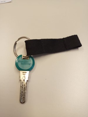 Kleiner Schlüssel, vermutlich für Spind oder Fahrradschloß. Gefunden auf Sitzgelegenheit direkt vor dem Eingang des Viktor Franz Hess - Hauses.