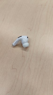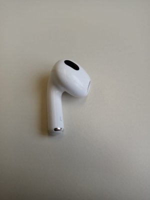 einzelner weißer AirPod (rechts), gefunden im Gang/Treppenhaus Erdgeschoss Hauptgebäude