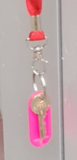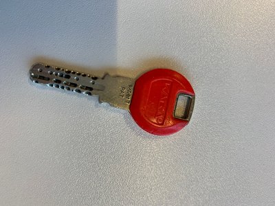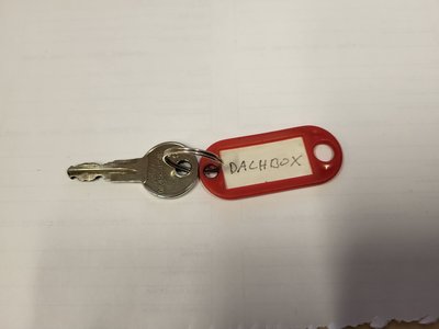 Kleiner Schlüssel, vermutlich für Spind oder Fahrradschloß. Gefunden auf Sitzgelegenheit direkt vor dem Eingang des Viktor Franz Hess - Hauses.