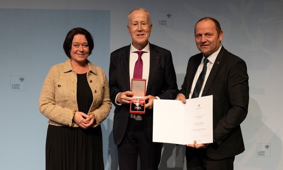 Vergangenen Freitag überreichte Landeshauptmann Anton Mattle den Tiroler Adler-Orden an Persönlichkeiten, die zwar nicht aus Tirol stammen, sich aber um das Land Tirol verdient gemacht haben. Unter den Ausgezeichneten befanden sich auch Universitätsrätin Mag. Dr. iur. Angelika Schätz sowie Mag. Elmar Pichl (Ministerium für Frauen, Wissenschaft und Forschung), die beide den Adler-Orden in Gold erhielten.