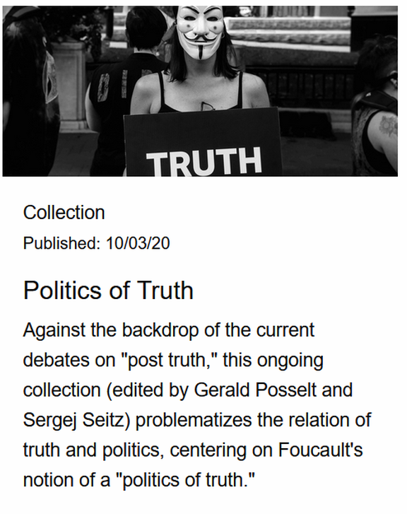 Seitz, Sergej / Flatscher, Matthias (2020): Latour, Foucault, and Post-Truth. Rethinking Critique in Times of the 'Truth-Crisis', Le foucaldien 6.1/6, 1–23, https://doi.org/10.16995/lefou.83