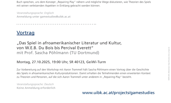 Vortrag „Das Spiel in afroamerikanischer Literatur und Kultur, von W.E.B. Du Bois bis Percival Everett“