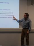 Ein gemeinsames Mittagessen im Unicafé diente dem ersten Kennenlernen. Im Anschluss nahmen die Gäste gemeinsam mit 25 Psychologie-Studierenden der Uni Innsbruck an einer 2-stündigen Veranstaltung im Rahmen des Masterseminars teil, in der Prof. Glaser und Prof. Sparks den Studierenden aus Charlotte und Innsbruck ihre jeweiligen Forschungsschwerpunkte und Projekte, insbesondere zum Thema „Selbstverwirklichung“ vorstellten. Den Innsbrucker Studierenden bot sich die Möglichkeit, mehr über den Einfluss selbstverwirklichter Führung auf persönliche Leistung und Entwicklung zu erfahren. Prof. Sparks stellte sein Assessment, das Actualized Leader Profile (ALP) vor und erläuterte die Interpretation der individuellen Profile des ALP. An dem Online-Assessment konnten die Studierenden beider Universitäten vorab freiwillig teilnehmen.