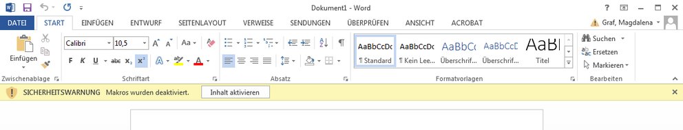 Im Dokument wird am oberen Rand diese Sicherheitswarnung angezeigt:
