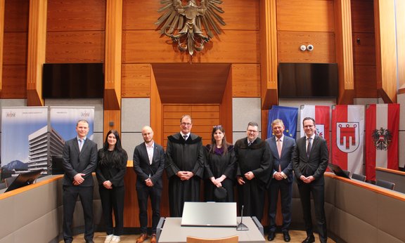 Am 20. April 2026 erreichte der von Frau Univ.-Prof. MMag. Dr. Diana Niksova und Herrn Univ.-Ass. (Postdoc) Mag. Dr. Michael Jehle organisierte Moot Court aus Arbeitsrecht seinen diesjährigen Höhepunkt: Im Schwurgerichtssaal des LG Innsbruck traten vier Teams – je zwei als Revisionswerber und zwei als Revisionsgegner – in einer simulierten Verhandlung vor dem Obersten Gerichtshof gegeneinander an.
