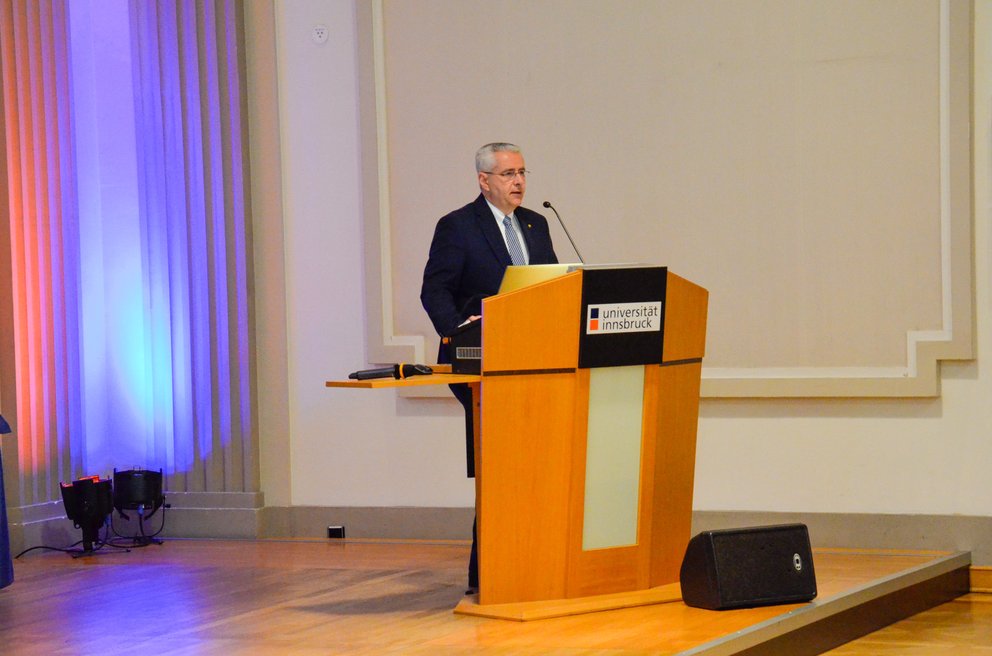 Das Highlight des Fakultätstages war der Festvortrag von Dr. Klaus-Dieter Gosch, dem Präsidenten des Oberlandesgerichts Innsbruck, zum Thema „Aktuelle Entwicklungen in der ordentlichen Gerichtsbarkeit“.