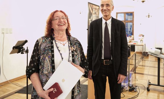 Das Institut für Romanistik und der Frankreich-Schwerpunkt der Universität hatten am Donnerstag, 20.10.2022 zur Abschiedsvorlesung von Eva Lavric in die Claudiana eingeladen. „Eva Lavric ist eine Wissenschaftlerin und Universitätslehrerin von großem internationalem Renommee und mit einer großen thematischen Bandbreite“, betonte Rektor Tilmann Märk in seiner Begrüßung im vollbesetzten Claudiasaal. „Zusammenfassend lässt sich feststellen, dass Eva Lavrics Forschungsleistung, Forschungsbreite und Forschungstiefe beeindruckend ist und dass sie Außergewöhnliches für die Verbindung von Theorie und Praxis geleistet hat.“ Als Überraschung konnte Rektor Märk am Ende seiner Rede in Vertretung des Bundespräsidenten die höchste Auszeichnung für Wissenschaftler*innen in Österreich an Eva Lavric verleihen. Die Romanistin erhielt für ihre außergewöhnlichen Leistungen das österreichische Ehrenkreuz für Wissenschaft und Kunst, I. Klasse.