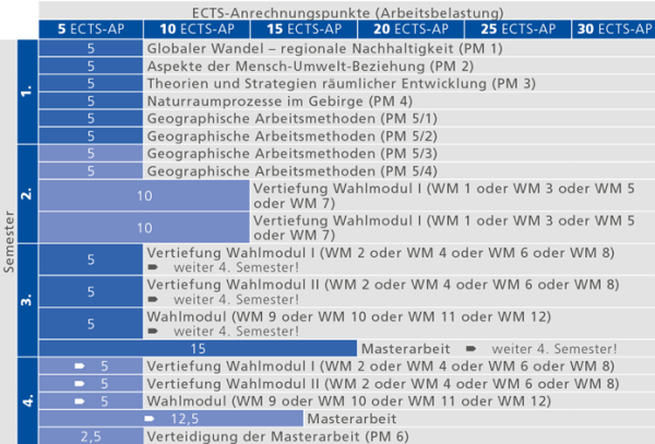 Mittels Curriculum können mehrere wichtige Fragen bereits vor Studienbeginn geklärt werden: welche Zulassungsvoraussetzungen gelten für das Masterstudium Geographie: Globaler Wandel – regionale Nachhaltigkeit, wie lange dauert das Studium, welche Module müssen absolviert werden etc.