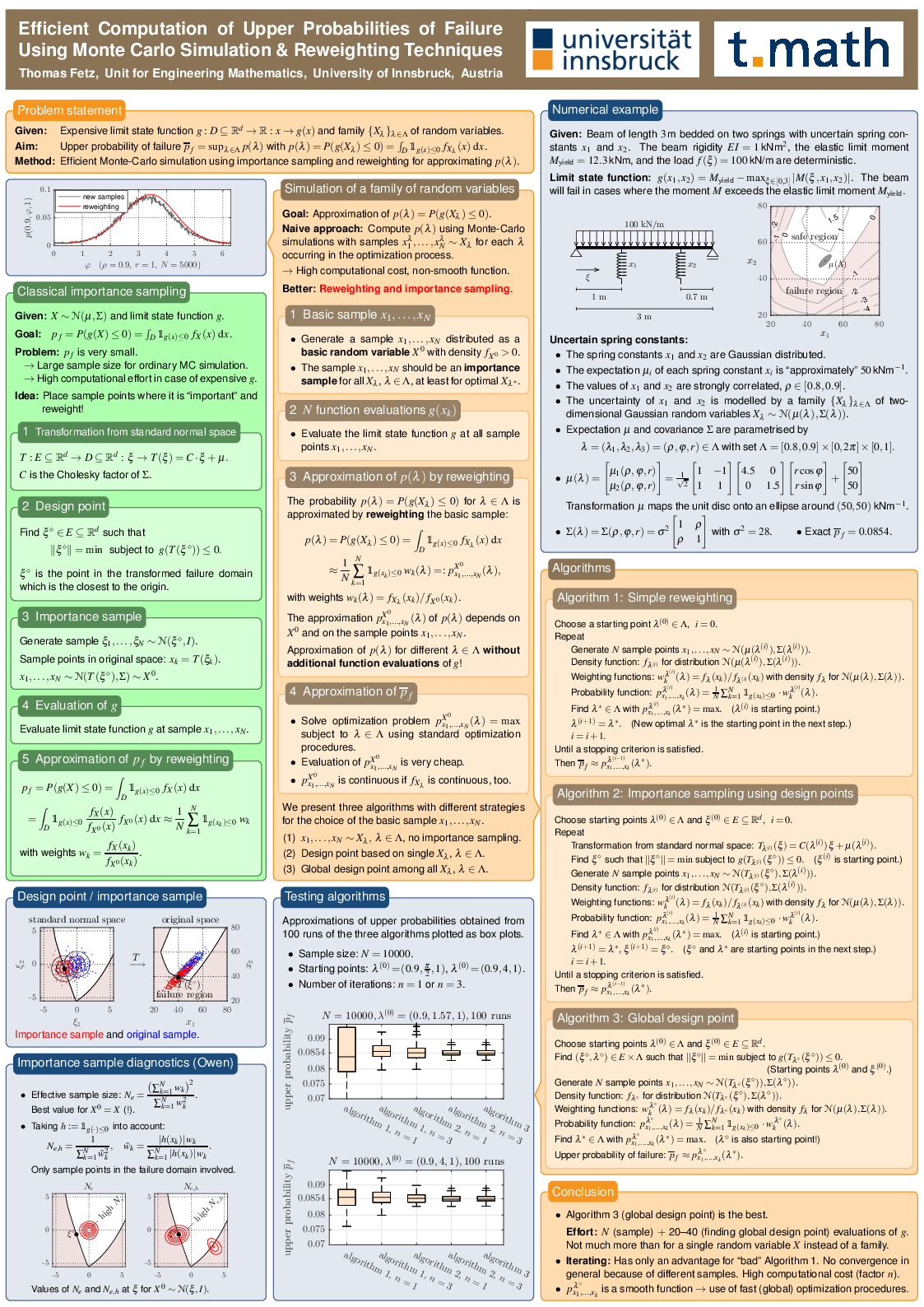 - Th. Fetz (2017). Efficient computation of upper probabilities of failure. In: Bucher, Christian; Ellingwood, Bruce R.; Frangopol, Dan M.: Proceedings of the 12th International Conference on Structural Safety and Reliability (ICOSSAR 2017). Wien: TU-MV Media Verlag GmbH, ISBN 978-3-903024-28-1, 493 - 502.