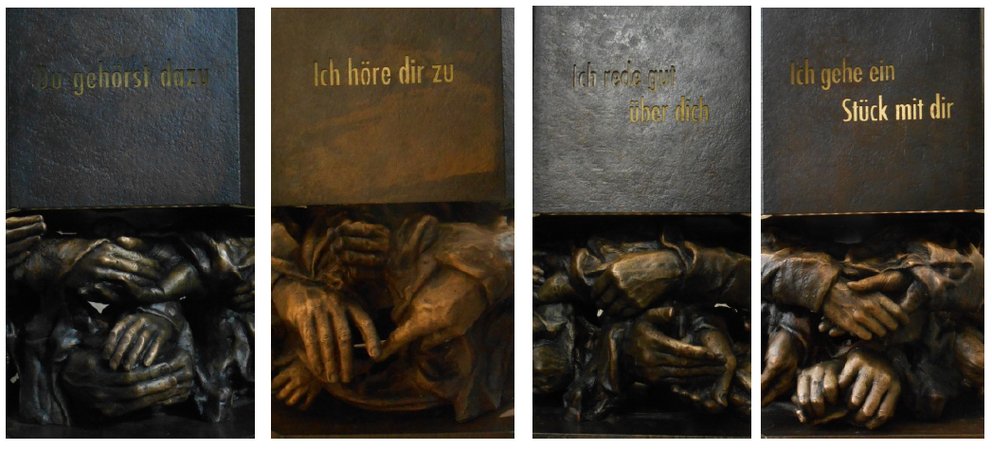 Die siebenfältige Stele lädt uns ein, über unsere Beziehungen, unsere Ausgrenzungen, unsere alltägliche Herzlosigkeit nachzudenken. Ihr gelingt dies ohne erhobenen Zeigefinger oder drohender Mahnung apokalyptischer Reiter oder erschütternden Gerichtsworten.