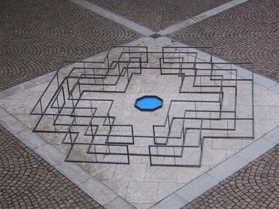 All dies läßt sich in gewisser Weise versammeln in der Figur des Labyrinths. Es ist für Gelmi ein Ort des Mystischen und ein uraltes Symbol des Lebens, ja der gesamten Welt, wo man sich verlieren kann, wo plötzlich der gesamte Ernst des Lebensweges selbst zum Vorschein kommt, der uns häufig vor unentscheidbare Situationen stellt, wo es keine Fluchtmöglichkeit gibt. Nur der distanzierte Betrachter vermöchte die Zusammenhänge zu überschauen. Aber solch souveräne Betrachter von außen sind wir nie, sondern zwangsläufig - oder sollte ich sagen wesenhaft - in die Verwirrungen des Lebens hineingenommen. Da wird jedes erhellende Moment zu einem wertvollen Schatz. Und wenn Sie sich heute abend hier umsehen, glaube ich, daß man sagen kann, daß es viele solche erhellende Momente gibt. Sammeln Sie diese Schätze ein und nehmen Sie sie mit.