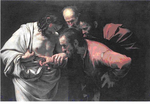 Das heutige Evangelium ist sehr anregend gewesen für Volksfrömmigkeit und Kunst: man spricht vom "ungläubigen Thomas" und in der Malerei wurde gerne dargestellt, wie Thomas die Wunden Jesu untersucht. In einem sehr realistischen Bild des Malers Caravaggio sieht man, wie Thomas buchstäblich mit seinem Zeigefinger in der Seitenwunde Jesu herumbohrt, so dass man fast meinen möchte, das hätte noch einmal weh tun müssen:
