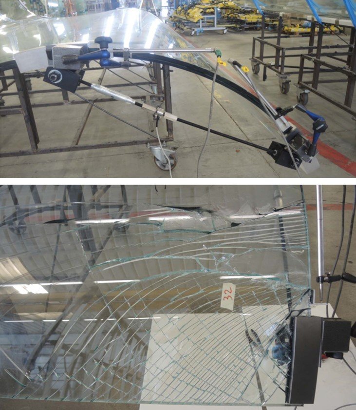 Für die Firma Frener & Reifer wurden, in Zusammenarbeit mit dem Ingenieurbüro Neulichedl & Partner, Belastungsversuche an wellenförmigen Glasbauteilen aus VSG durchgeführt. Aufgrund der Scheibendimensionen und den Transportbedingungen wurden die Versuche im Werk der Firma Sunglass in Padua/Italien durchgeführt.