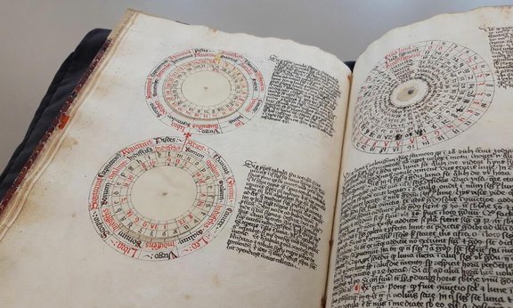 Diese astronomische Sammelhandschrift aus dem 15. Jahrhundert (Innsbruck, Universitäts- und Landesbibliothek Tirol , Cod. 1032 — Schnals, 15. Jh., u.a. 1465, 1470 und 1472) fasziniert mit beweglichen Drehscheiben...