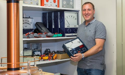 Fragt man Hellbert nach seiner Tätigkeit am Campus Technik, antwortet er bescheiden. „Eigentlich bin ich so richtig unscheinbar“, glaubt er, wobei er sich allerdings vermutlich täuscht. Denn es gibt wohl kaum einen Physikstudenten in Innsbruck, der ihn nicht zumindest vom Sehen kennt. Immerhin sind die von ihm vorbereiteten und teilweise selbst gebauten Physik-Versuche fixer Bestandteil ihres Studiums. Und auch wenn ein Großteil der eigentlichen Arbeit des gelernten Elektromechanikers hinter den Kulissen und im Keller unter den Hörsälen vonstattengeht, ist er auch in den Vorlesungen mit dabei und sorgt dafür, dass die Demonstrationen reibungslos vonstattengehen.