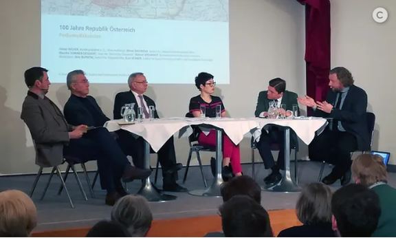 Zum Auftakt einer Ringvorlesung anlässlich des Republiksjubiläums fand Mitte März eine hochkarätige Podiumsdiskussion zum Thema statt – teilgenommen haben neben Alt-Bundespräsident Heinz Fischer die Expertinnen und Experten Oliver Rathkolb, Monika Sommer-Sieghart und Helmut Wohnout, moderiert haben die Innsbrucker Historiker Dirk Rupnow und Kurt Scharr.