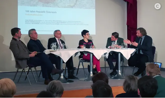 Zum Auftakt einer Ringvorlesung anlässlich des Republiksjubiläums fand Mitte März eine hochkarätige Podiumsdiskussion zum Thema statt – teilgenommen haben neben Alt-Bundespräsident Heinz Fischer die Expertinnen und Experten Oliver Rathkolb, Monika Sommer-Sieghart und Helmut Wohnout, moderiert haben die Innsbrucker Historiker Dirk Rupnow und Kurt Scharr.