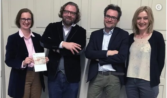 Der Vortragende mit VeranstalterInnen der Ringvorlesung (von links): Gunda Barth-Scalmani, Dirk Rupnow, Norbert Christian Wolf, Ingrid Böhler.