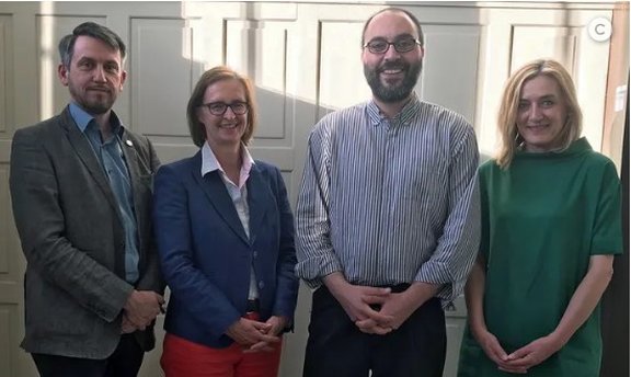 Der Vortragende Yasir Yilmaz (2. von rechts) mit OrganisatorInnen der Ringvorlesung (von links): Kurt Scharr, Gunda Barth-Scalmani und Ingrid Böhler.