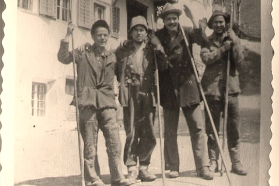 Vier der Deserteure aus Hart am Tag der Befreiung vom Nationalsozialismus, 5. Mai 1945. (Credit: © Foto aus dem Film „Das Versteck“)
