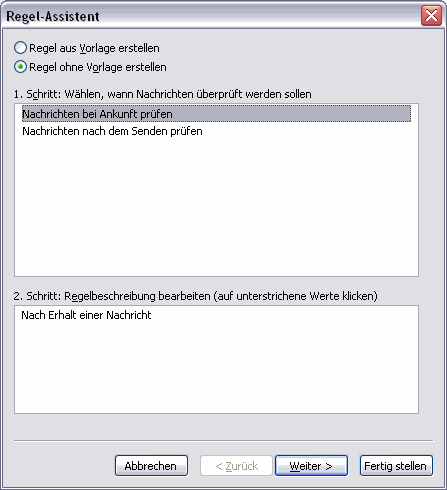 Klicken Sie auf Regel ohne Vorlage erstellen...