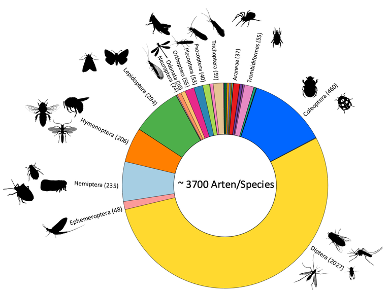 Für unseren Fotowettbewerb suchen wir deine schönsten Insekten-Fotos von Arten, die im IBM-Projekt detektiert wurden. Rechts in der Abbildung siehst du die gefundenen Insektenordnungen. Du kannst bis zu zwei Bilder einreichen. Eine Jury wählt die drei eindrucksvollsten Aufnahmen aus.