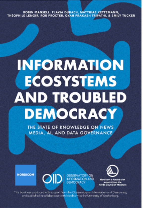- Mansell, Robin; Durach, Flavia; Kettemann, Matthias C.; Lenoir, Théophile; Procter, Rob; Tripathi, Gyan; Tucker, Emily (2025): Information Ecosystems and Troubled Democracy: A Global Synthesis of the State of Knowledge on New Media, AI and Data Governance. International Observatory on Information and Democracy. (Weblink)