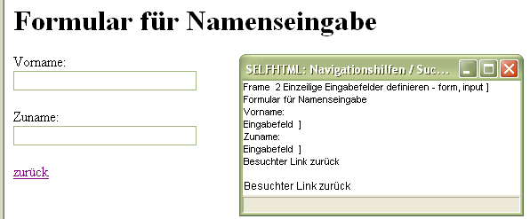 Bei diesem Beispiel sehen Sie im rechten Bereich die Ausgabe eines Screenreaders. Da die Formatierung der Formularfelder korrekt vorgenommen wurde, kann ein eindeutiger Zusammenhang zwischen der Beschriftung und dem jeweiligen Eingabefeld hergestellt werden.