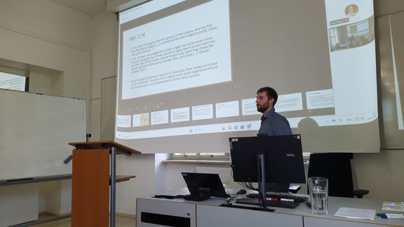 Organised by Libor Pruša (Brno), the Colloquium Brunense-Oenpontanum was held on 29 October 2024 at Masaryk University in Brno (Czech Republic) and focused on the (ancient) greek world in all its facets. Among the four speakers were DK members Florian Posselt, with the lecture ‘The Division into the Continents Europe, Asia and Africa among Early Greek Authors“ and Alexander Steiner with the lecture ”The Early Greek Language Area. Approaches and Definition'.