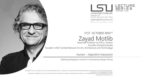 Welcome you to our third session in the lectures series 2022/2023 of Lightweight Structures Unit , Faculty of Architecture, Universität Innsbruck hosted by Professor Günther H. Filz.